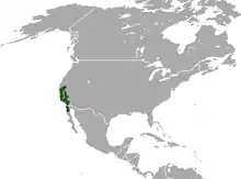 Elle ne vit que dans l'État de Californie, aux États-Unis, et au nord du Mexique (Baja California), jusqu'à 2080 m d'altitude[4].