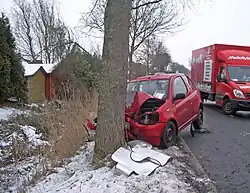 En 2020, sur le routes départementales françaises, parmi les 388 automobilistes tués dans un accident sans tiers, 147 se sont tués contre un arbre et 71 dans un fossé ou talus[2].