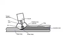 - (en) Cet article est partiellement ou en totalité issu de l’article de Wikipédia en anglais intitulé « Flux-cored arc welding » (voir la liste des auteurs).