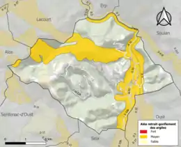 Les mouvements de terrains susceptibles de se produire sur la commune sont soit des chutes de blocs, soit des glissements de terrains, soit des effondrements liés à des cavités souterraines, soit des mouvements liés au retrait-gonflement des argiles. Près de 50 % de la superficie du département est concernée par l'aléa retrait-gonflement des argiles, dont la commune de Soueix-Rogalle[41]. L'inventaire national des cavités souterraines permet par ailleurs de localiser celles situées sur la commune[42].