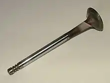 - pièce cylindrique dont le diamètre est de l'ordre du quart de celui de la tête[6], assure le guidage vertical de la soupape. La tige coulisse ainsi dans le guide de soupape, ouverture cylindrique pratiquée dans la culasse. En augmentant le diamètre de la tige, la dissipation de chaleur vers la culasse est facilitée mais la soupape est plus lourde[6].
