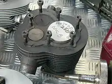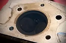 - le diamètre des soupapes d'admission et d'échappement n'est d'ailleurs pas nécessairement identique afin d'offrir des propriétés différentes. Mais le diamètre des soupapes est rapidement limité étant donné qu'il dépend de la forme de la surface du haut du cylindre, forme qui ressemble, sur les moteurs actuels, à une « galette ». Il est alors courant d'augmenter le nombre de soupapes par cylindre ; ce nombre varie généralement entre deux et cinq[6]. Voir aussi Moteur multisoupape.