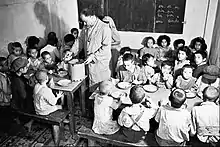Le deuxième projet à la suite des recommandations du Dr Schmidt, était de nourrir les enfants sans viande[52], mais avec des produits laitiers, poissons et œufs. La SP a été choisie par l’OSE et le JOINT comme projet pilote pour prouver l’efficacité du régime. Le programme a commencé en mars 1956[53], l’amélioration a été constatée rapidement (après 6 mois), le médecin scolaire a constaté que les enfants tous en dessous de huit ans étaient en meilleur état de santé que le groupe témoin qui n’avait pas bénéficié du régime, les enfants avaient pris plus de poids, ils ont grandi plus vite, ont eu un meilleur taux d’hémoglobine, n’ont pas eu de déficience en vitamines et ont eu une meilleure « apparence »[54],[55]. Ce plan a pu être par la suite étendu à d’autres institutions pour enfants mais cette extension a nécessité une formation du personnel ce qui a pris du temps et de nouveaux investissements. En 1959, un rapport toutefois note que le régime a un déficit en protéine animale : ‘Le déficit en protéine animale est essentiellement dû à un manque de lait et de fromage dans la ration alimentaire.’[56]. En 1960, un rapport note que l’effet de l’action du JOINT est visible dans le bien-être des enfants[57].