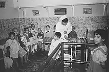 Jusqu'en 1948, la distribution des vêtements était rendue possible grâce à l'action de la Région de Casablanca qui fournissait des bons de tissu que des entreprises de tailleurs taillaient gratuitement, la distribution étant assumée par des bénévoles. À partir de 1948, Le JOINT a procédé à une distribution de vêtements au moins une fois par an, avec un budget significatif, par exemple en 1958, les 303 enfants de la SP ont reçu des vêtements pour une valeur de 957050francs(20200 euros de 2021)[37]. Les photos des années 1960, montrent des enfants en bonne santé et bien habillés.