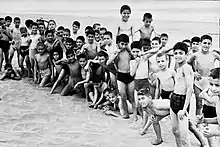 Les institutions juives et les autorités françaises se sont rendu compte très tôt, du besoin de vacances au grand air pour ces enfants qui n’étaient jamais sortis du mellah, qui ne connaissaient ni la mer, ni la montagne. L’organisme L’Aide scolaire de Casablanca organisa des camps dès la fin des années 1940[59],[60],[61]. Le DEJJ (Département Éducatif de la Jeunesse Juive) a formé des séries d’éducateurs et moniteurs pour encadrer les camps de vacances. En 1956, 4070 enfants[62] et en 1958, 5382 enfants[63] ont pu profiter des camps de vacances grâce au financement des autorités et du JOINT. La SP n’a pas été sélectionnée et n’a pu envoyer les enfants dans les montagnes ou dans des centres balnéaires. Une solution alternative, la Colonie urbaine, a été mise sur pied[64]: Durant les vacances d’été, les classes n’avaient pas lieu; mais les enfants néanmoins allaient à la SP où trois repas étaient servis et des activités en plein air étaient organisées par l’équipe. Un tiers des enfants soit une centaine ont profité par rotation de la ‘La Colonie Urbaine’: l’AIU a mis à la disposition des organisateurs une école située dans la grande banlieue de Casablanca, non loin de la mer, où les enfants pouvaient dormir et se restaurer. Le matin, les enfants avec une équipe de moniteurs spécialement formés partaient pour la plage où les enfants profitaient du plein air, du sport et des jeux, vers midi, ils rentraient à l’école de l’AIU pour se restaurer et faire une sieste, une voiture amenait la nourriture directement des cuisines de la SP, à midi et le soir[64].