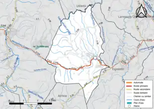 Située dans le bassin versant de l'Adour, la commune est traversée[13] par des affluents de la Nivelle, Amezpetuko erreka[14] et Opalazioko erreka.