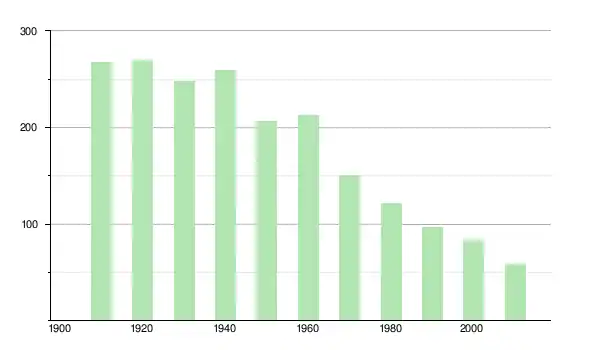 | 1950 | 206 | ▼ −20,46 % | |