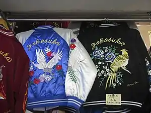 À la fin de la Seconde Guerre mondiale, les excédents de toiles de parachutes sont utilisés par les soldats américains pour faire concevoir des blousons légers tels que le Teddy, Varsity ou autres inspirés des universités des États-Unis[1]. Au départ, ceux-ci sont décorés de motifs essentiellement d'inspiration militaire puis se diversifient dans un mélange de culture japonaise et américaine se rapprochant de la technique du tatouage[2].