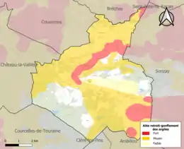 Le retrait-gonflement des sols argileux est susceptible d'engendrer des dommages importants aux bâtiments en cas d’alternance de périodes de sécheresse et de pluie. 68,4 % de la superficie communale est en aléa moyen ou fort (90,2 % au niveau départemental et 48,5 % au niveau national). Sur les 409 bâtiments dénombrés sur la commune en 2019, 370 sont en aléa moyen ou fort, soit 90 %, à comparer aux 91 % au niveau départemental et 54 % au niveau national. Une cartographie de l'exposition du territoire national au retrait gonflement des sols argileux est disponible sur le site du BRGM[24],[25].