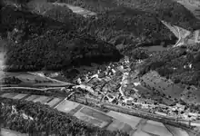 Vue du village depuis la chapelle du Vorbourg. | ||||