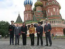 Les équipages principal et de secours du Soyouz TMA-19 pendant leur tour de cérémonie de la Place Rouge le 31 mai 2010.