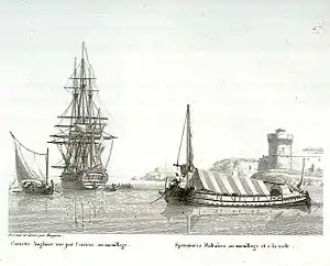 Les navires n'avaient pas de pont et ne possédaient qu'un seul mât, souvent équipé d'une voile latine[1]. Très répandus dans le commerce entre Malte et la Sicile, la marine française en a construits ou acquis pour les utiliser comme canonnières.