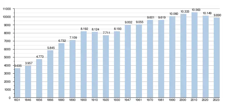 - Source: DGS , de 1831 à 1981=recensements population; à partir de 1990 = nombre d'habitants chaque 1 janvier