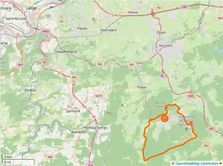 Situation de la commune dans l’arrondissement de Verviers et dans la province de Liège | |||||