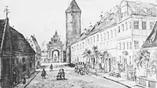 La rue est visible sur le plan historique de Johann Gregor Memhardt en 1652 ; le tronçon a été aménagé pendant la construction de la forteresse de Berlin au XVIIe siècle. La place devant la porte de Spandau sera plus tard reconnue comme Hackescher Markt ; le bâtiment lui-même fut démoli en 1718.