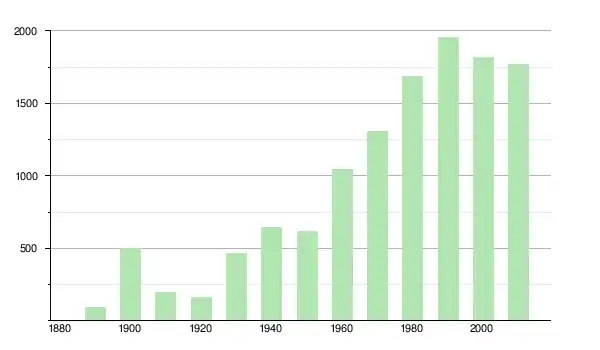 | 1980 | 1 687 | ▲ +29,37 % | |