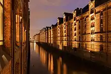 La Speicherstadt (littéralement « ville des entrepôts ») est une zone d'entrepôts à Hambourg en Allemagne.
