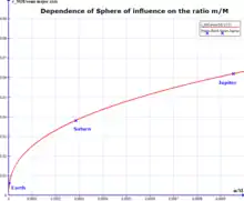 Rayon de la sphère d'influence (en multiples du rayon de la planète) |