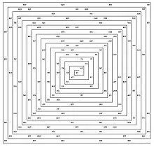 Ulam se trouva coincé, contraint d'écouter « un exposé très long et très ennuyeux »[2]. Il passa son temps à crayonner et se mit à gribouiller des entiers consécutifs, commençant par 1 au centre, dans une espèce de spirale tournant dans le sens inverse des aiguilles d'une montre. Il obtint une grille régulière de nombres, démarrant par un 1 au centre, et spiralant vers l'extérieur comme ceci :
