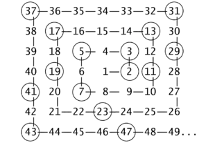 - (en) Grime, J. Haran, B. [Numberphile]. (2013). Prime Spirals [Fichier vidéo]. Repéré à url: https://www.youtube.com/watch?v=iFuR97YcSLM