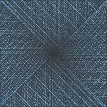 À sa surprise, les nombres entourés tendaient à s'aligner le long de lignes diagonales. L'image suivante illustre ce fait. C'est une spirale d'Ulam de 200 × 200, où les nombres premiers sont noirs. Les diagonales noires sont clairement visibles.