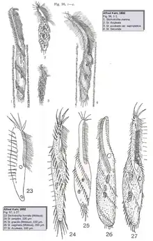 - (de) A. Kahl. Urtiere oder Protozoa I: Wimpertiere oder Ciliata -- Volume III Spirotricha, 1932, pages 556-560 : lire en ligne