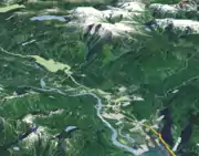 Squamish est située au nord de la baie de Howe, sur la route 99 (Sea to sky highway), à mi chemin entre Vancouver et Whistler.