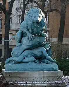 Il est ombragé par des marronniers, des platanes et des peupliers d’Italie. On y trouve un groupe, Drame au désert (1892), en fonte de fer, dû au sculpteur Henri Amédée Fouques.