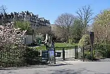 Le square conçu comme un jardin à l'anglaise est planté de quelques beaux arbres, parmi lesquels un merisier, un févier et des noisetiers pourpres.