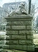 - Lion de Belfort (1897), œuvre de George William Hill symbolisant la puissance de l'Empire britannique - fortement inspirée de la sculpture le Lion de Belfort de l'alsacien Auguste Bartholdi, située à Belfort en France et terminée en 1879. Offert par la compagnie Sun Life, dont le siège social donne sur le square, le monument souligne le jubilé de la reine Victoria. Le socle est conçu par l'architecte Robert Findley et s'inspire du socle du lion au square Trafalgar à Londres. Le monument, outre d'évoquer les deux peuples fondateurs, français et britannique, sert également de fontaine[6];