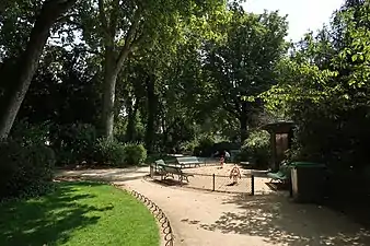 Le square compte une aire de jeux pour enfants et un point d'eau potable. Les chiens y sont interdits[1].