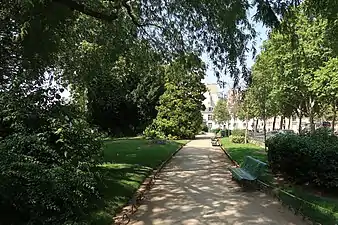 Il est créé par Adolphe Alphand, comme le square Santiago-du-Chili voisin (pendant du square, de l'autre côté de l'hôtel des Invalides). Il est planté de nombreux arbres (marronniers, platanes d'Orient centenaires, tulipier de Virginie, magnolia), massifs de fleurs, buis, fusains, viornes, aucubas, troènes et arbustes fleuris. Il possède le label Écojardin[1].