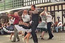 Elle est parfois appelée call dance, car un meneur (un musicien ou une sorte de maître à danser, appelé au Québec « le caller[1] » ou le « câlleur[2] ») annonce la figure qui doit être effectuée par les danseurs. Cependant, certaines danses possèdent une chorégraphie traditionnelle, le caller n'étant alors là que pour rappeler la figure.