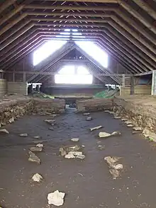 Vue extérieure du principal site mis au jour protégé par un bâtiment. | ||