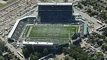 En 1972, 1 499 sièges sont ajoutés aux tribunes est, et de l'éclairage supplémentaire permet maintenant de télédiffuser les matchs en couleur. Puis en décembre 1977 un référendum chaudement disputé autorise la ville à ajouter un deuxième niveau d'estrades du côté ouest, en plus d'aménager des espaces pour des bureaux et pour les chambres des joueurs. Cette extension, qui ajoute 8 000 sièges, nécessite la démolition de 12 maisons sur la rue adjacente au stade[2]. À cause d'une grève de la construction, ce n'est qu'en juin 1979 que l'agrandissement peut être inauguré, en même temps que la surface de jeu est refaite en pelouse artificielle et qu'un nouveau tableau indicateur est installé ; la capacité est maintenant de 27 606 sièges.