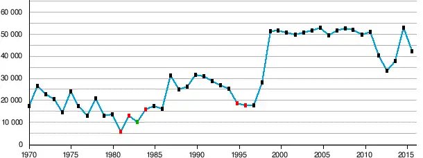 | 3 | 4-1 | Éliminatoires de la Coupe du monde 1966 | 30 080 | |||