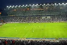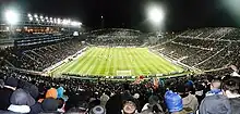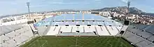 La capacité est réduite à 42 000 places jusqu'en août 2013 où elle passe à 48 000 places[41]. Le stade est inauguré officiellement le 16 octobre 2014 et propose désormais plus de 67 000 places couvertes[42]. Le coût total réévalué par la Cour des comptes est estimé à 551 millions d'euros dont une partie est à verser à Arema jusqu'en 2045 pour l'entretien et la mise aux normes[43].