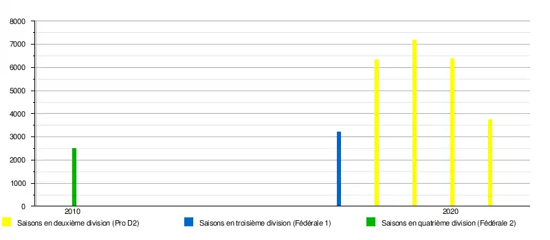 - L'affluence moyenne de la saison 2020-2021 est évalué sur 3 matchs, en raison de la Covid-19.