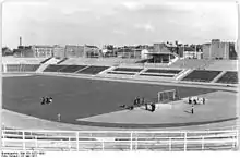 Le site sert dès le début du XIXe siècle comme lieu de revues et de défilés militaires puis au milieu du siècle, une caserne des fusiliers est construite. Après la Première Guerre mondiale, la police de Berlin reprend le site et édifie en 1929 le stade de la police. Celui-ci est détruit pendant les bombardements de la Seconde Guerre mondiale[2].