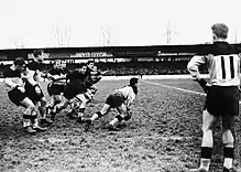 Cette finale du championnat 1948-1949 présente la particularité d'avoir été disputée deux fois, le premier match, se déroulant sous une pluie torrentielle, s’étant terminé sur un score nul 3-3[9]. C'est le Castres olympique du capitaine Jean Matheu-Cambas, de Maurice Siman et Jean Pierre-Antoine qui remporte le titre aux dépens du Stade montois en remportant le second match 14-3 grâce à 3 essais.