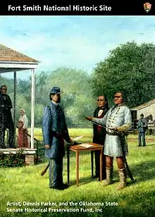 Le , à Fort Townson, dans le secteur choctaw du territoire de l’Oklahoma, Watie signa un accord de cessez-le-feu avec des envoyés de l’Union, devenant ainsi le dernier général confédéré à rendre les armes[1],[2].