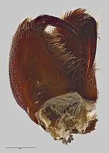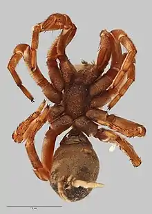 La carapace de la femelle holotype mesure 5,5 mm de long sur 4,0 mm et l'abdomen 5,8 mm de long sur 4,5 mm[2].