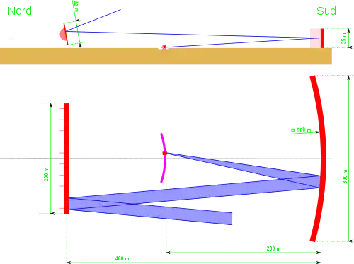 | GRT Nançay | 100 m | 200 m | 40 m | 300 m | 35 m | 280 m | 460 m | 300 m |