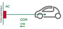 La recharge « standard » ou « normale »[61], d'une puissance de 3 kVA, est celle que l'État français recommande de privilégier[62] pour recharger entièrement ou en partie la batterie de son véhicule électrique. Selon les modèles, elle peut s'effectuer généralement en 6 à 8 heures. Elle est donc parfaitement adaptée aux longues pauses (nuit au domicile, journée sur le lieu de travail) et pour compléter le niveau de charge de sa batterie.