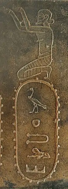 La statue repose sur un piédestal comportant de face et à l'arrière, le motif égyptien symbolisant l'union de la Haute et de la Basse Égypte, et sur les deux côtés latéraux une représentation des vingt-quatre provinces de l'Empire perse, les peuples de l'Ouest et du Sud à droite du roi, ceux de l'Est et du Nord sur sa gauche[4]. Chaque province est représentée par un personnage agenouillé, bras levés, portant son costume national, avec une légende placée dans un « cartouche forteresse » indiquant le nom de la province en hiéroglyphes[3]. Cette décoration est symptomatique de la fusion des thématiques égyptienne (union des deux pays, ennemis foulés au pied par le pharaon) et perse (tous les peuples de l'empire se soumettant au roi) traditionnelles[6].