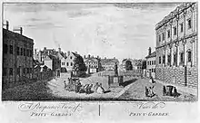 La statue de Jacques II a été déplacée à plusieurs endroits depuis sa première érection[15]. Elle se trouvait à l'origine dans la cour de galets du palais de Whitehall, où elle a été installée le jour du Nouvel An 1686. Elle était située derrière la Maison des banquets et faisait face à la rivière, une position qui a attiré beaucoup de commentaires satiriques après la fuite de Jacques de Londres pendant la glorieuse Révolution de 1688 ; il a été dit que l'emplacement de la statue indiquait sa méthode d'évasion[16].
