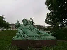 Le Tibre est représenté sous les traits d'un homme d'âge mûr, barbu et à demi couché, selon le schéma de représentation typique des dieux-fleuve.