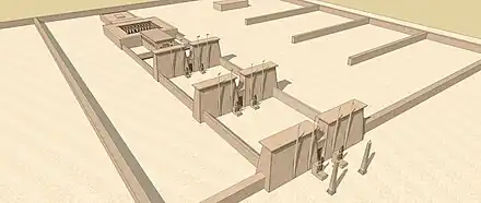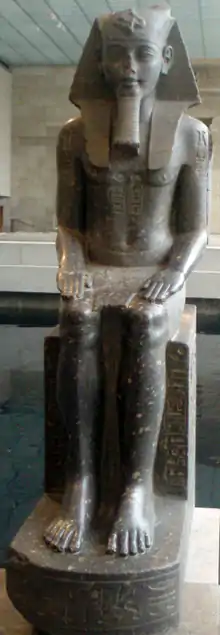 La statue colossale d'Amenhotep III et Tiyi est une statue de groupe monolithique représentant le pharaon égyptien Amenhotep III, sa grande épouse royale Tiyi, et trois de leurs filles. Il s'agit de la plus grande dyade connue jamais sculptée[5]. La statue se trouvait à l'origine à Médinet Habou, dans l'ouest de Thèbes ; aujourd'hui, elle est la pièce maîtresse de la salle principale du Musée égyptien du Caire.