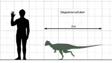 La taille de Stegoceras est estimée à environ 2 mètres de long pour un poids de 55 kilos.