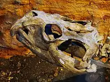 Stenaulorhynchus est un rhynchosaure primitif avec un crâne moins robuste et massif que les genres du Trias supérieur.